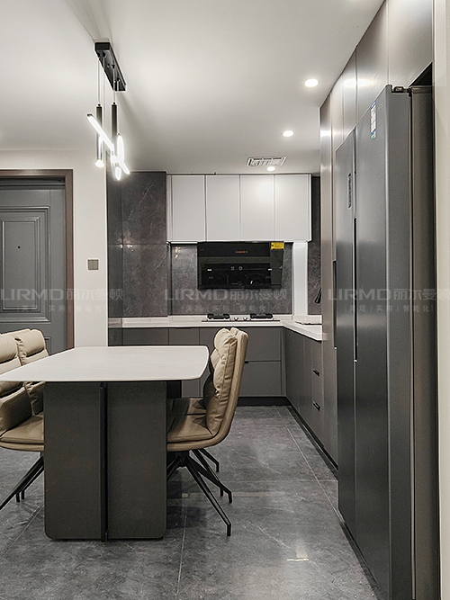 L型開(kāi)放式廚房連接3平米餐邊柜,分擔(dān)了廚房收納還可以減少了儲(chǔ)物壓力,