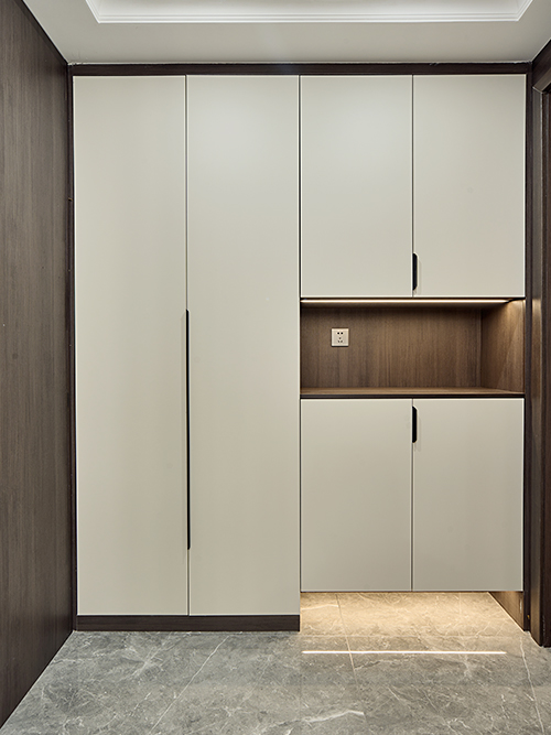 實木柜體搭配PET膚感柜門,一門到頂,質感超不錯,多組設計更是實現收納需求,