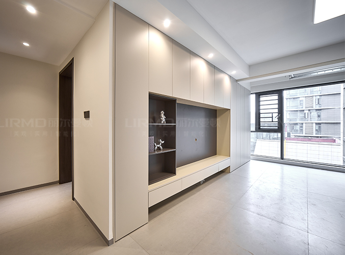 整屋通鋪瓷磚,盡顯大氣,電視背景墻采用整面墻做柜子設計,超大收納空間儲物更方便,