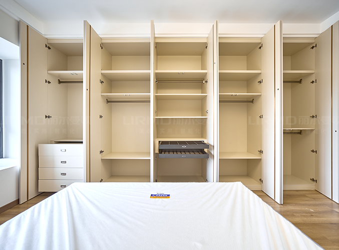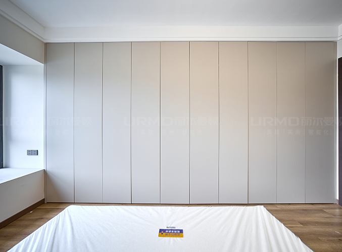 實木柜體搭配PET膚感柜門,質感超不錯,一門到頂柜子設計,多規格掛衣架+抽屜