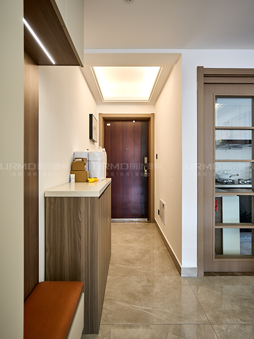多功能餐邊柜留有換鞋區和掛衣區,進去更方便,中間位置做開放格,可放置更多物品,
