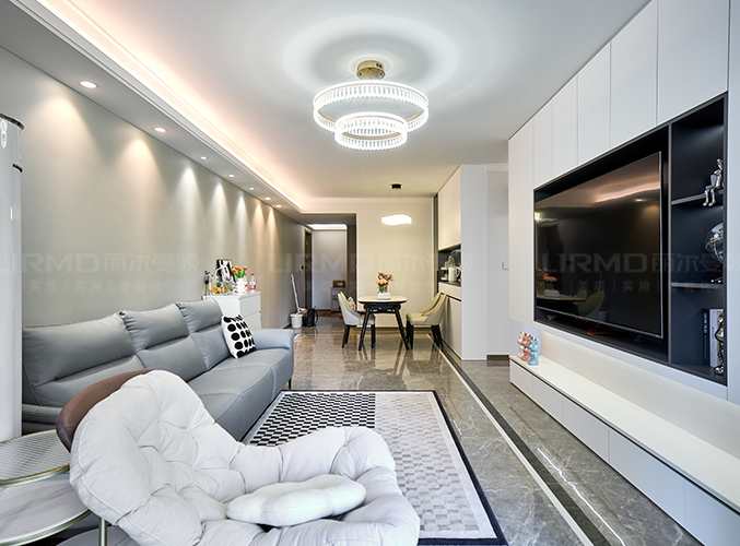 整屋通鋪瓷磚,盡顯大氣,整墻電視背景墻設(shè)計(jì),右邊和下方內(nèi)嵌式設(shè)計(jì),