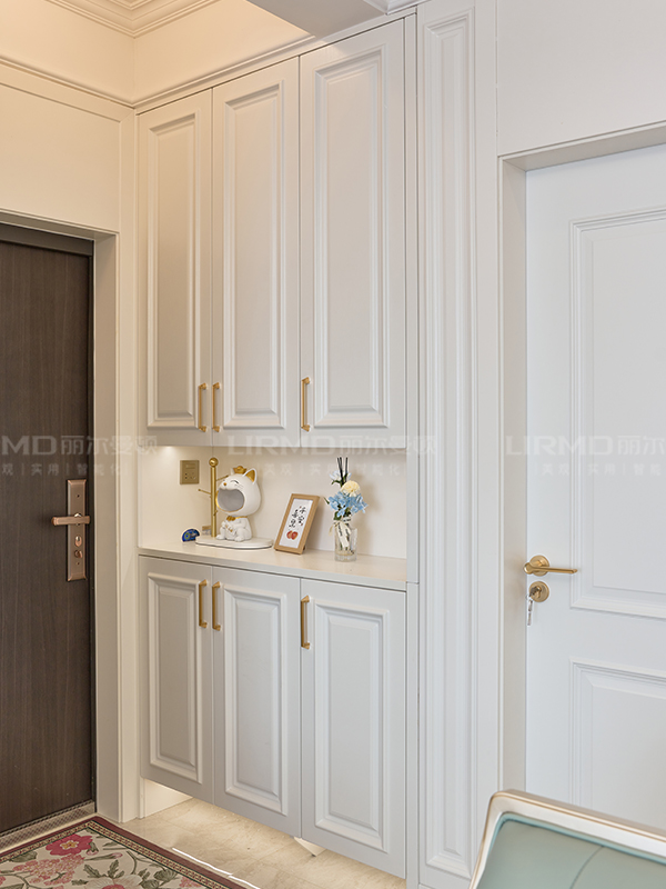 玄關(guān)柜+餐邊柜+嵌入式冰箱柜,櫥柜+沙發(fā)背景墻,主臥室滿墻衣柜+次臥衣柜