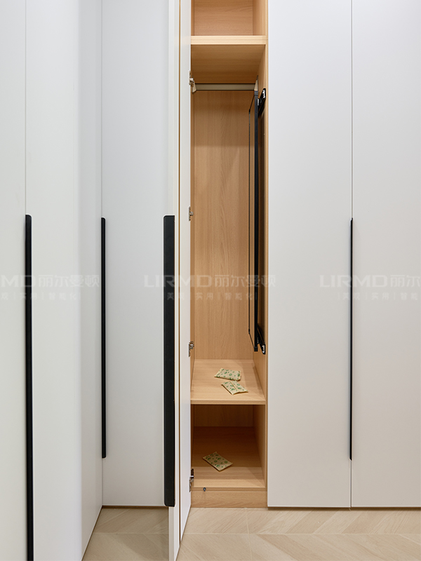 一門到頂式衣柜,簡潔利落的線條展現了現代簡約的精髓