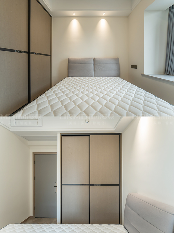 柜體采用18厚杉木芯板,柜門采用LSB板PET膚感柜門,一門到頂,五金使用原裝進口的百隆五金