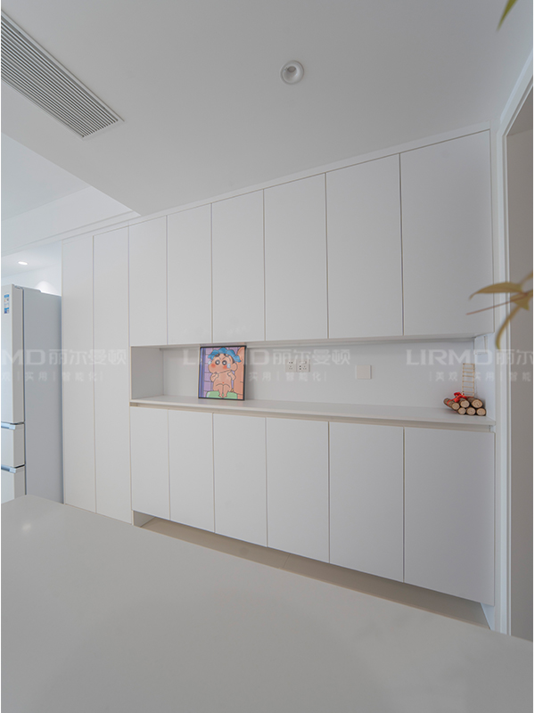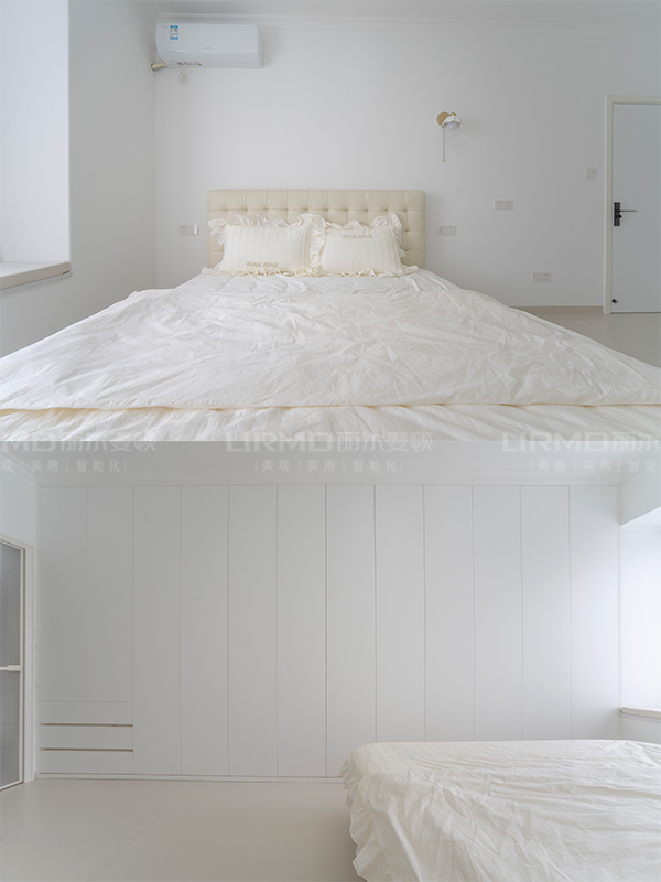 ?無論是墻面、頂面、還是柜子,該案例整體采用奶白色色系搭配,非常柔和治愈。?
