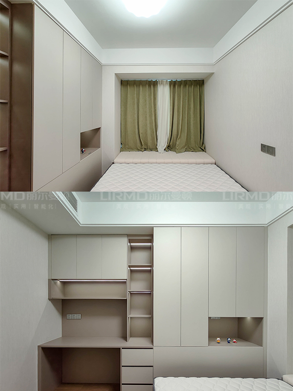 臥室衣柜采用書柜一體化設(shè)計(jì),更大限度的利用空間