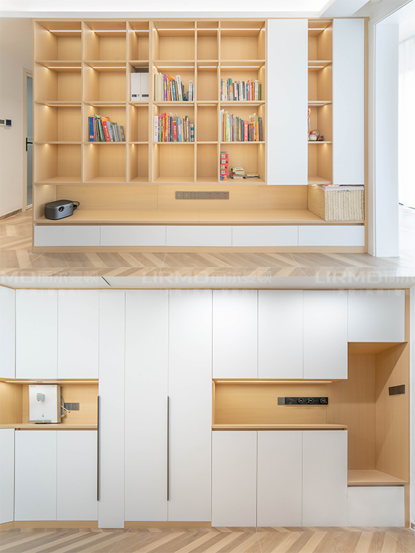 讓客廳面積擴大,使空間更通透,實現客廳與書房一體化。