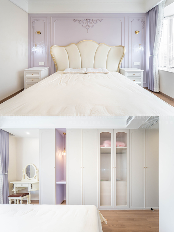 長沙靠譜裝修公司,長沙靠譜全屋定制,臥室衣柜加梳妝臺,復古法式風,