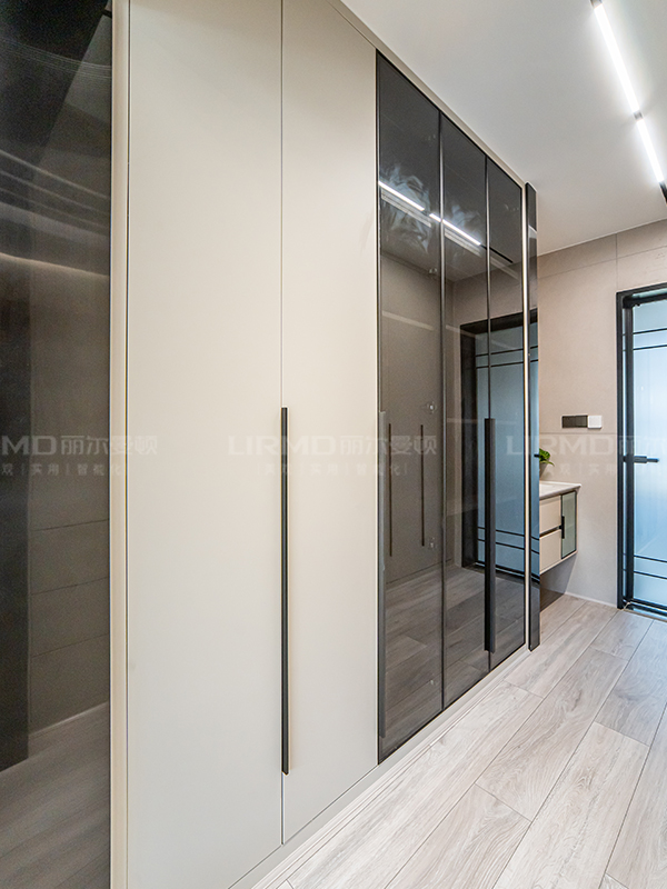 全屋高端定制:柜體板材18厚杉木實芯板,柜門有pet膚感、高光、超晶、五金使用原裝進口奧地利百隆五金