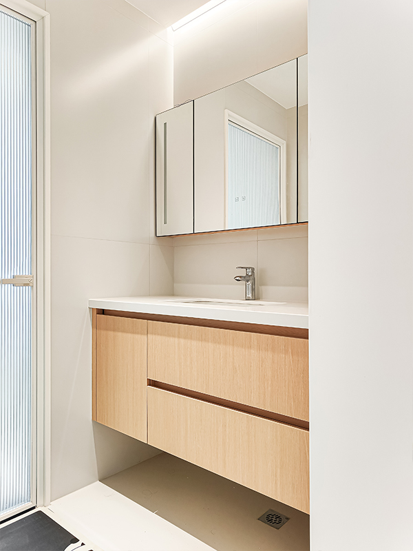 極簡感貫穿整個空間,原木色淡化了極簡風帶來的疏離感,讓家有了溫度
