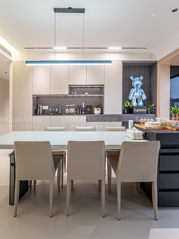 整體簡潔通透,餐邊柜,電視柜增加儲(chǔ)物空間的同時(shí)視覺上更干凈整潔