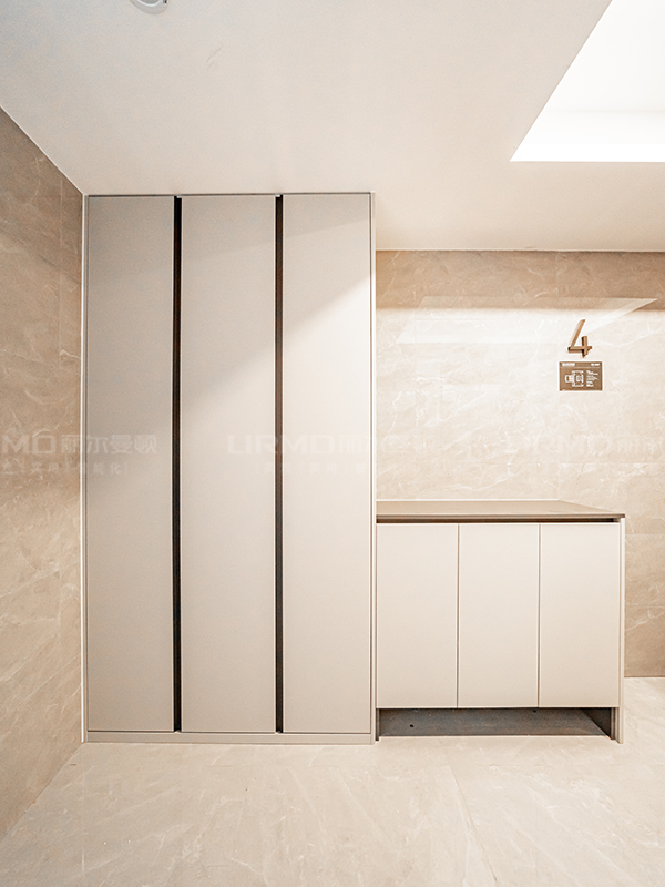 采用濟州灰+象牙灰的顏色搭配,搭配精裝房原本的色系,整體顏色和諧統一